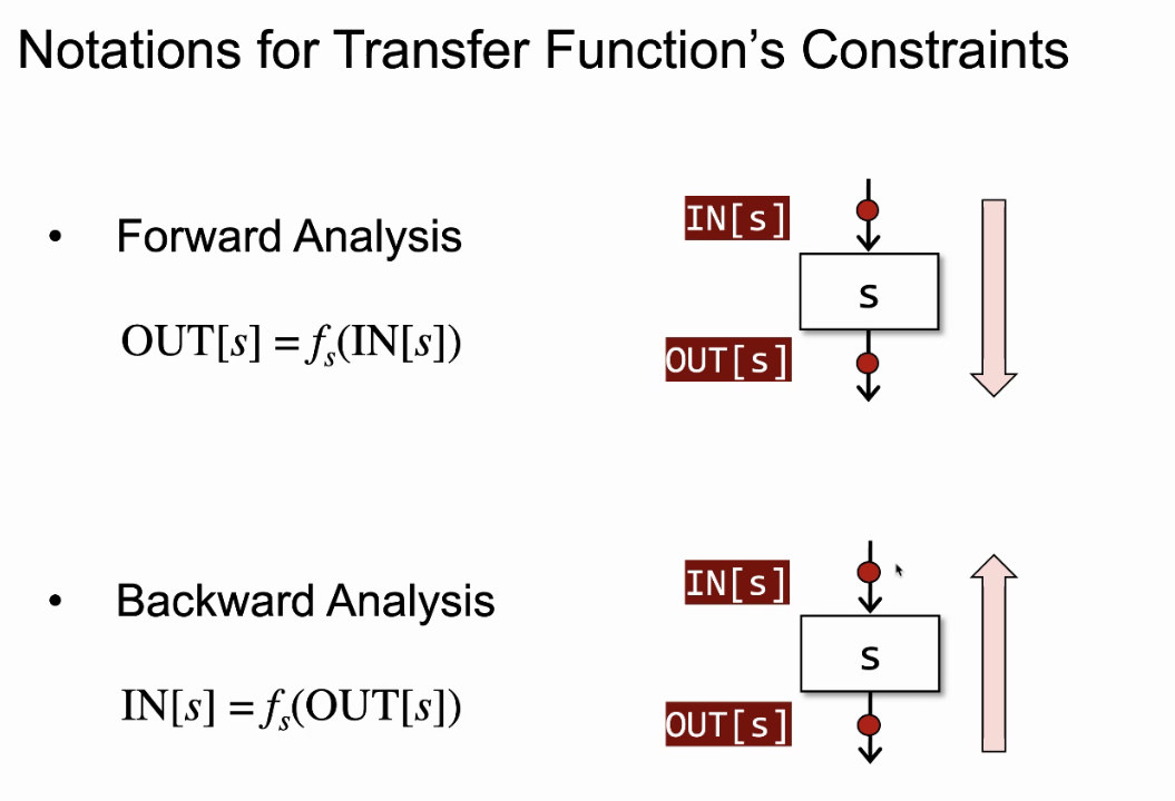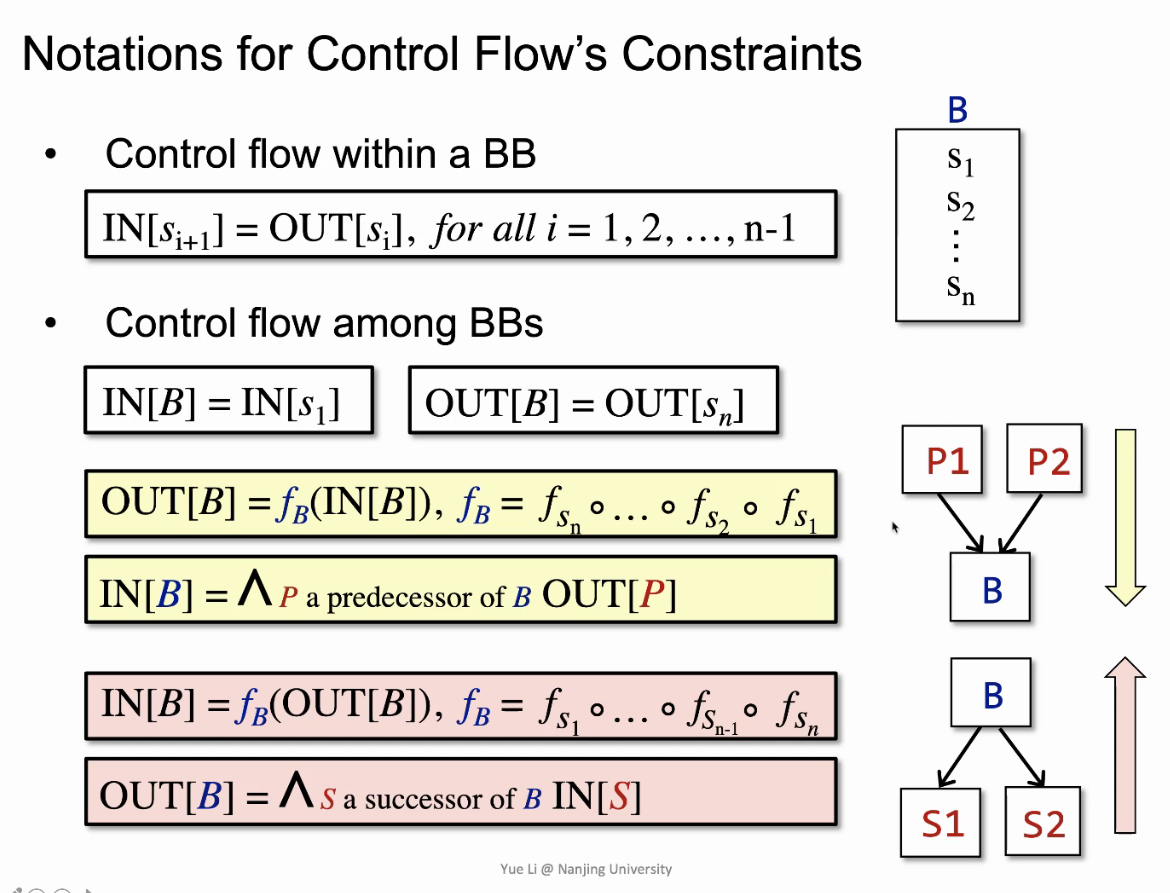 前向分析时,OUT[B]是算出来的,IN[B]是B的前驱的OUT们简单meet出来的